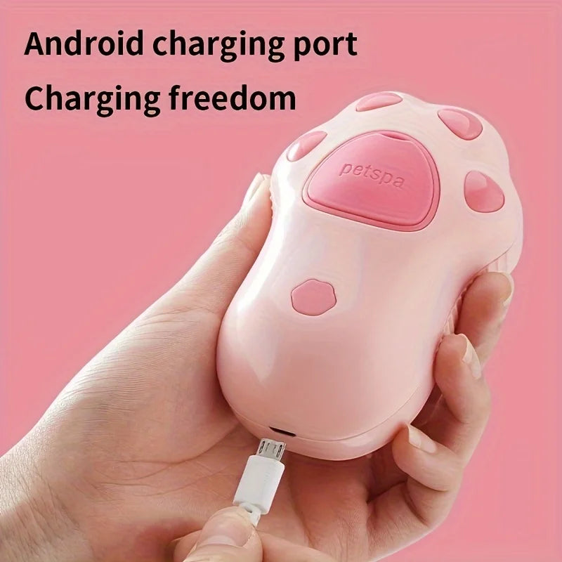 # Cat Steam Brush – Electric Spray & Hair Removal Comb Designed for feline grooming professionals and dedicated pet owners, this electric steam brush combines gentle heat therapy with efficient hair removal in one versatile tool. The integrated spray function releases warm mist to soften your cat's coat, reducing matting and tangles while making the grooming process more comfortable. The fine-tooth comb attachment effectively removes loose fur, undercoat, and shed hair without pulling or irritating sensitive skin. Ideal for cats with long or thick coats, this device promotes healthier skin and a shinier appearance while minimizing hairballs and household shedding. Cordless operation and ergonomic design ensure easy handling during grooming sessions.